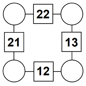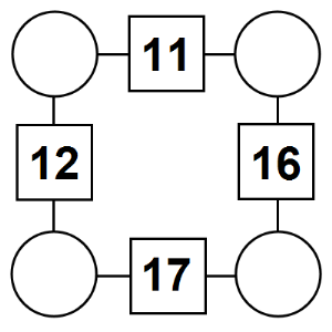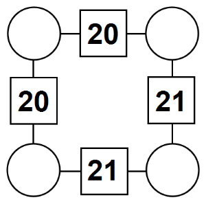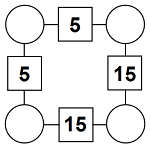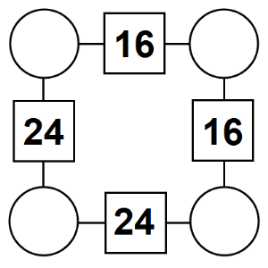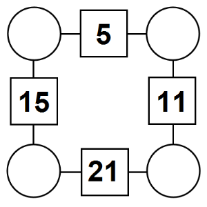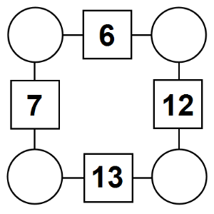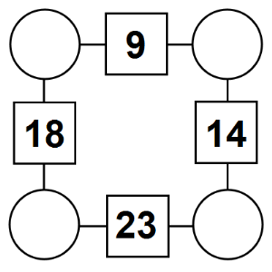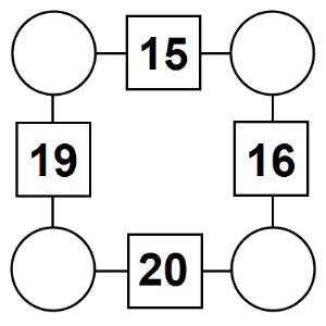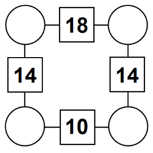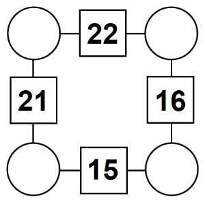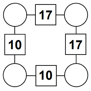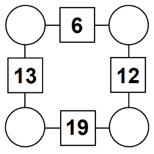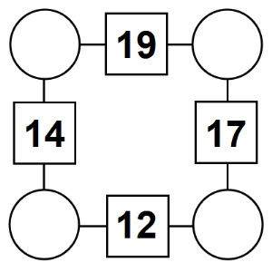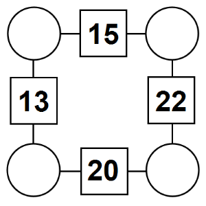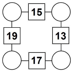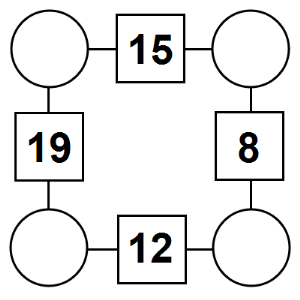 The aim of an arithmagon is to work out which numbers go in the empty circles. The numbers in the square boxes are made by adding together the numbers in the circles either side. For example, if the number in the square box was 10 you could try 6 and 4, but the numbers must also add up on the other edges, making this more difficult than it first appears.