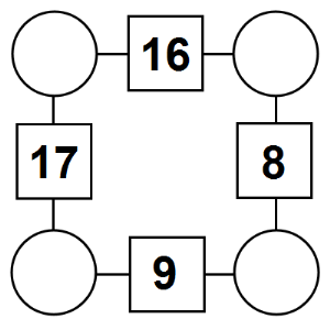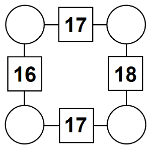 The aim of an arithmagon is to work out which numbers go in the empty circles. The numbers in the square boxes are made by adding together the numbers in the circles either side. For example, if the number in the square box was 10 you could try 6 and 4, but the numbers must also add up on the other edges, making this more difficult than it first appears.