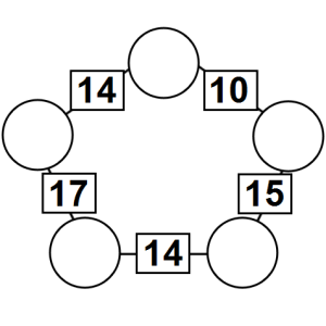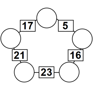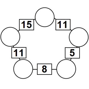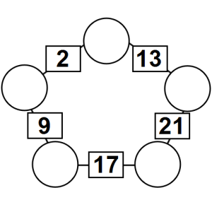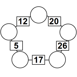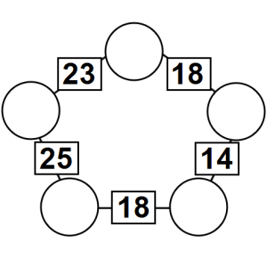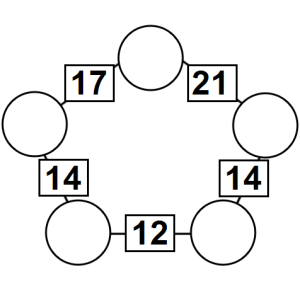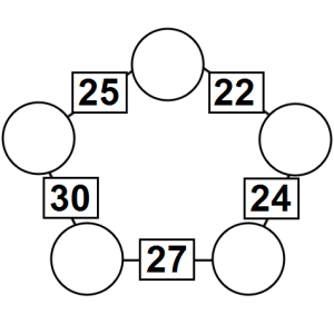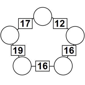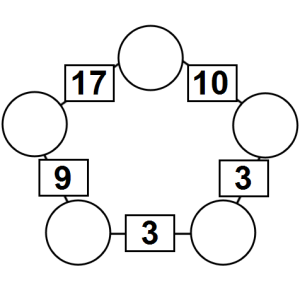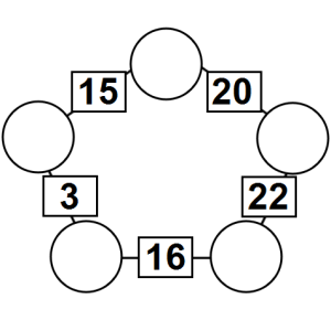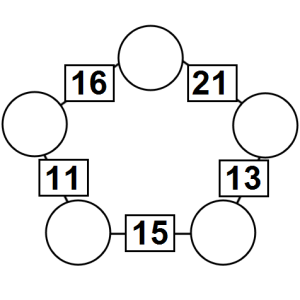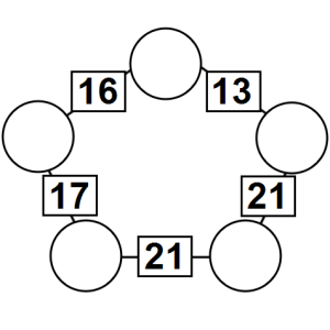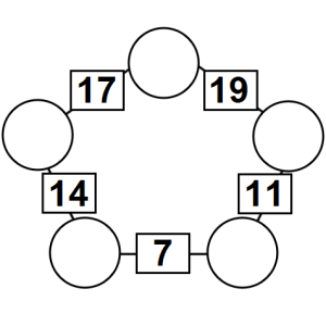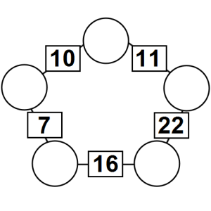 The aim of an arithmagon is to work out which numbers go in the empty circles. The numbers in the square boxes are made by adding together the numbers in the circles either side. For example, if the number in the square box was 10 you could try 6 and 4, but the numbers must also add up on the other edges, making this more difficult than it first appears.