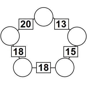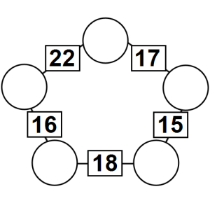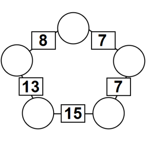 The aim of an arithmagon is to work out which numbers go in the empty circles. The numbers in the square boxes are made by adding together the numbers in the circles either side. For example, if the number in the square box was 10 you could try 6 and 4, but the numbers must also add up on the other edges, making this more difficult than it first appears.