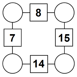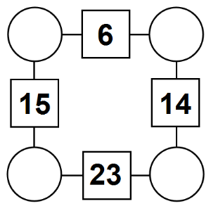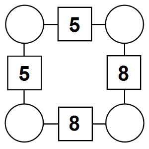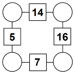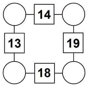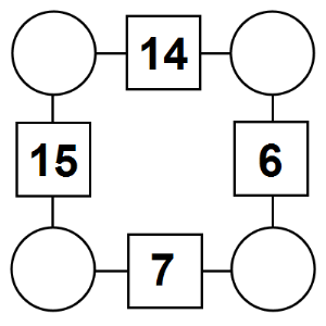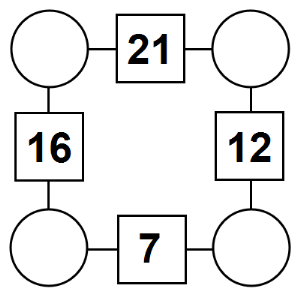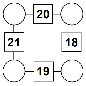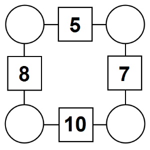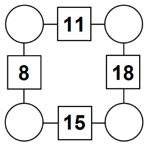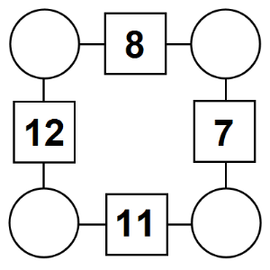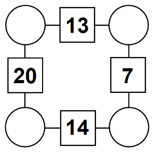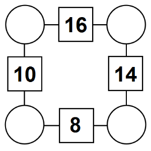 The aim of an arithmagon is to work out which numbers go in the empty circles. The numbers in the square boxes are made by adding together the numbers in the circles either side. For example, if the number in the square box was 10 you could try 6 and 4, but the numbers must also add up on the other edges, making this more difficult than it first appears.