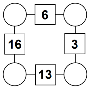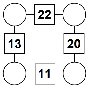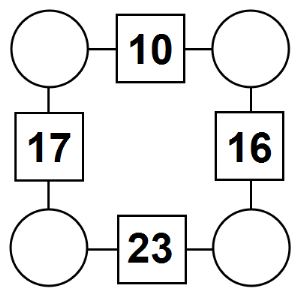 The aim of an arithmagon is to work out which numbers go in the empty circles. The numbers in the square boxes are made by adding together the numbers in the circles either side. For example, if the number in the square box was 10 you could try 6 and 4, but the numbers must also add up on the other edges, making this more difficult than it first appears.