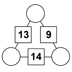 The aim of an arithmagon is to work out which numbers go in the empty circles. The numbers in the square boxes are made by adding together the numbers in the circles either side. For example, if the number in the square box was 10 you could try 6 and 4, but the numbers must also add up on the other edges, making this more difficult than it first appears.