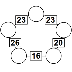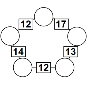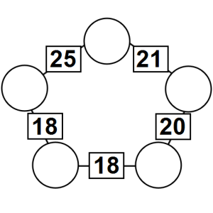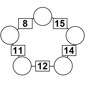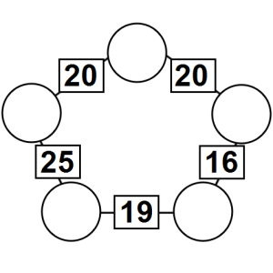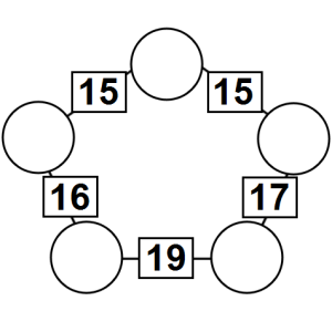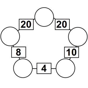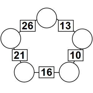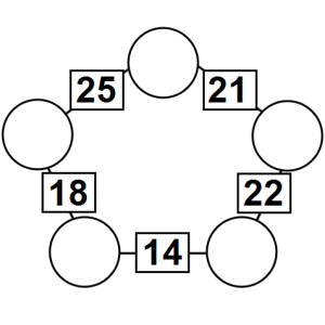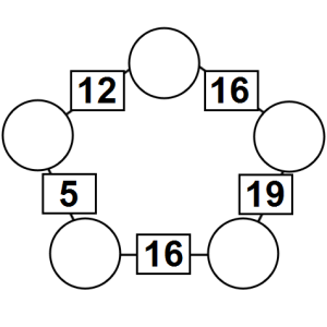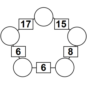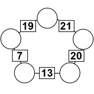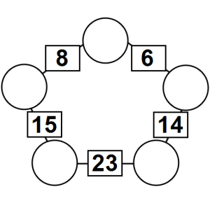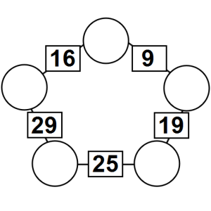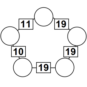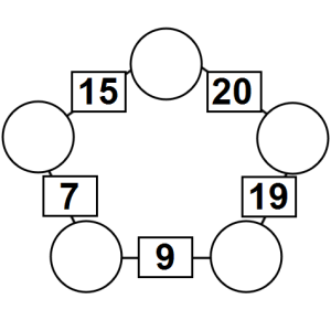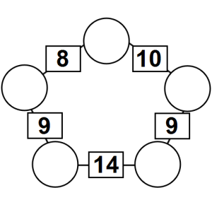The aim of an arithmagon is to work out which numbers go in the empty circles. The numbers in the square boxes are made by adding together the numbers in the circles either side. For example, if the number in the square box was 10 you could try 6 and 4, but the numbers must also add up on the other edges, making this more difficult than it first appears.