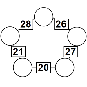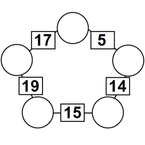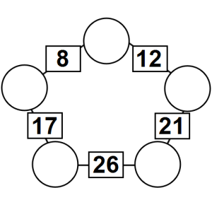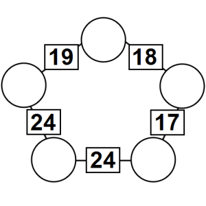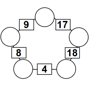 Here are four new difficult arithmagons for you to print on a Summer themed worksheet. Use the buttons below the puzzles the shuffle the arithmagons to create four new puzzles, to view the solution, or to print as a worksheet.