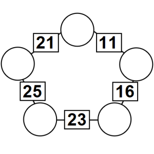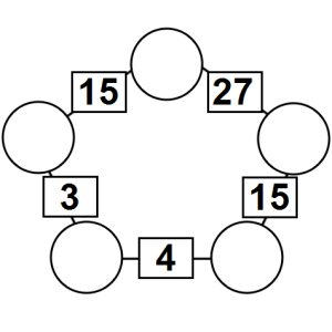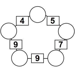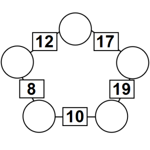 The aim of an arithmagon is to work out which numbers go in the empty circles. The numbers in the square boxes are made by adding together the numbers in the circles either side. For example, if the number in the square box was 10 you could try 6 and 4, but the numbers must also add up on the other edges, making this more difficult than it first appears.