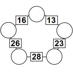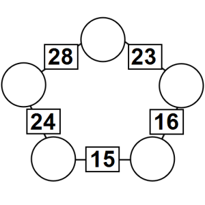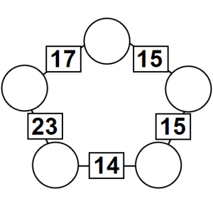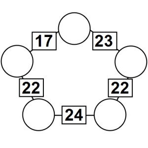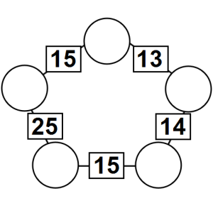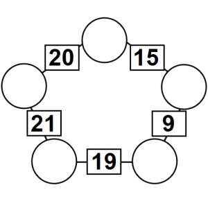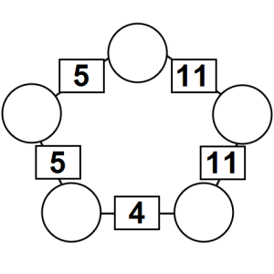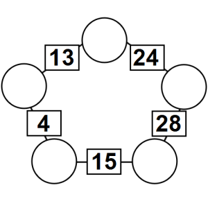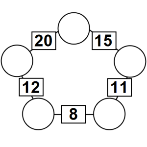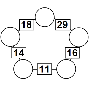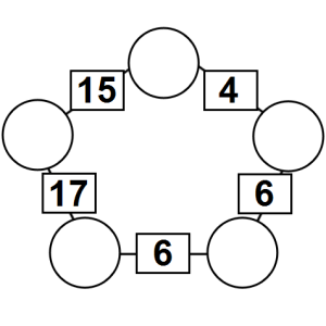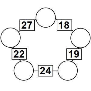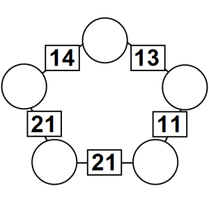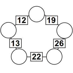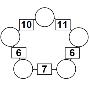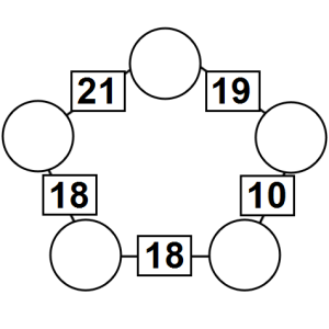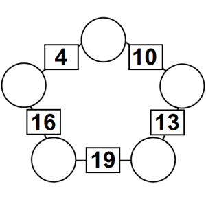 The aim of an arithmagon is to work out which numbers go in the empty circles. The numbers in the square boxes are made by adding together the numbers in the circles either side. For example, if the number in the square box was 10 you could try 6 and 4, but the numbers must also add up on the other edges, making this more difficult than it first appears.