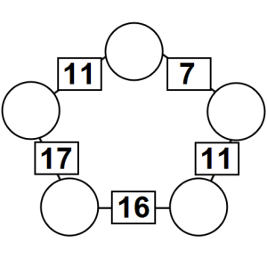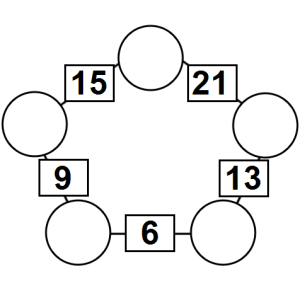 The aim of an arithmagon is to work out which numbers go in the empty circles. The numbers in the square boxes are made by adding together the numbers in the circles either side. For example, if the number in the square box was 10 you could try 6 and 4, but the numbers must also add up on the other edges, making this more difficult than it first appears.