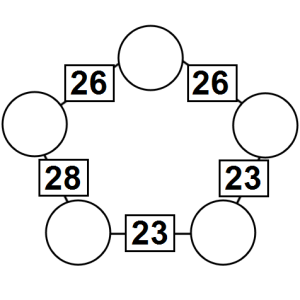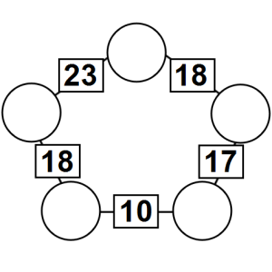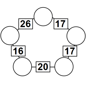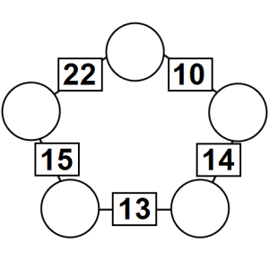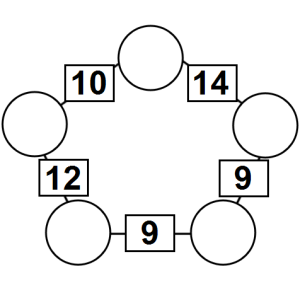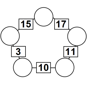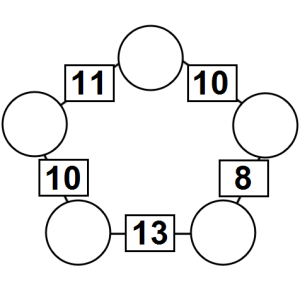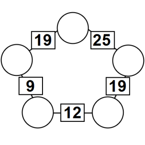 The aim of an arithmagon is to work out which numbers go in the empty circles. The numbers in the square boxes are made by adding together the numbers in the circles either side. For example, if the number in the square box was 10 you could try 6 and 4, but the numbers must also add up on the other edges, making this more difficult than it first appears.