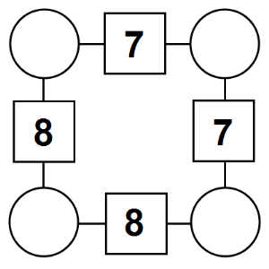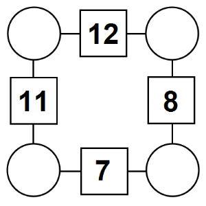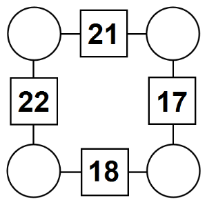 The aim of an arithmagon is to work out which numbers go in the empty circles. The numbers in the square boxes are made by adding together the numbers in the circles either side. For example, if the number in the square box was 10 you could try 6 and 4, but the numbers must also add up on the other edges, making this more difficult than it first appears.