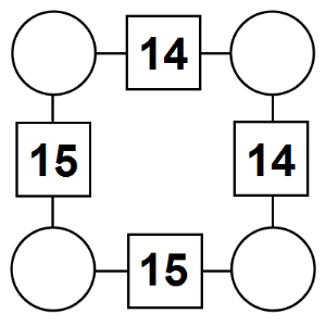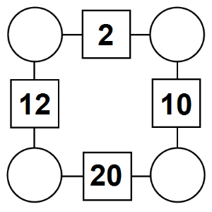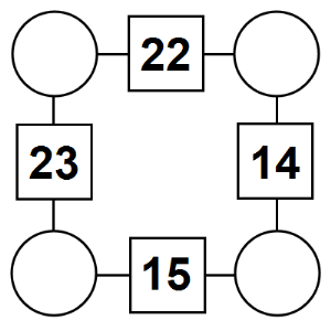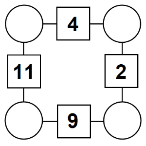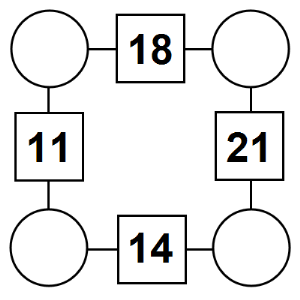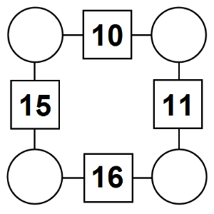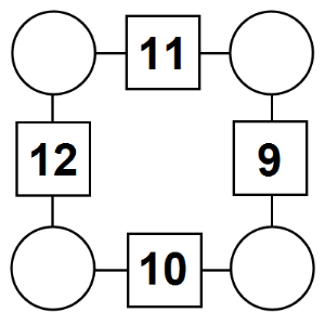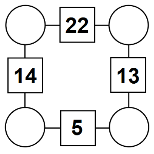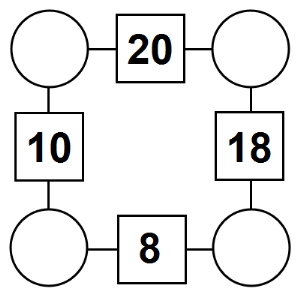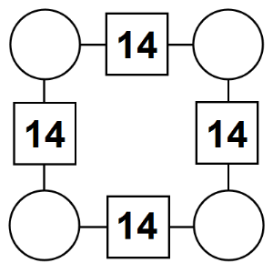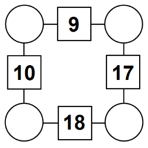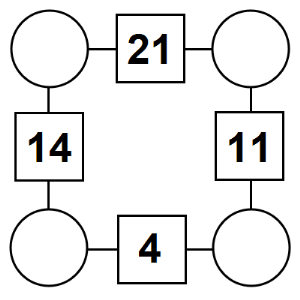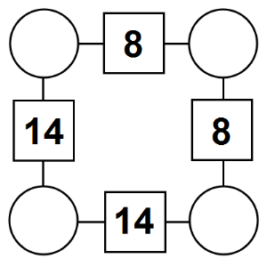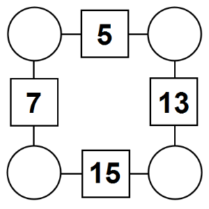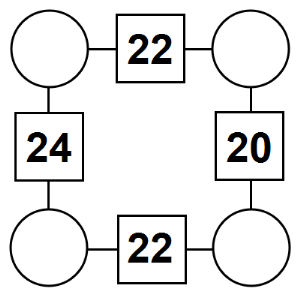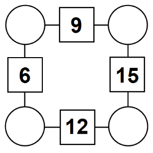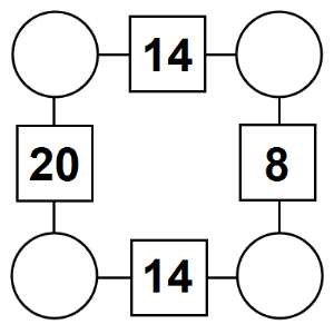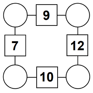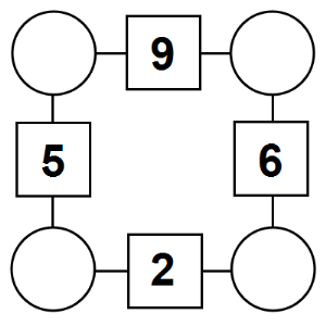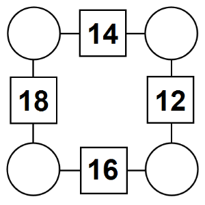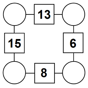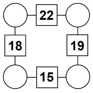 The aim of an arithmagon is to work out which numbers go in the empty circles. The numbers in the square boxes are made by adding together the numbers in the circles either side. For example, if the number in the square box was 10 you could try 6 and 4, but the numbers must also add up on the other edges, making this more difficult than it first appears.
