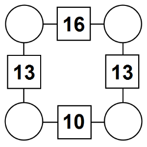 The aim of an arithmagon is to work out which numbers go in the empty circles. The numbers in the square boxes are made by adding together the numbers in the circles either side. For example, if the number in the square box was 10 you could try 6 and 4, but the numbers must also add up on the other edges, making this more difficult than it first appears.