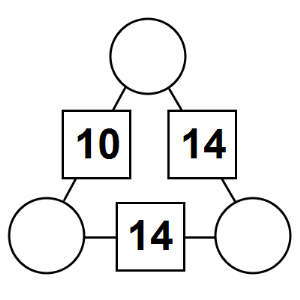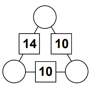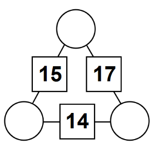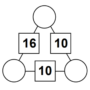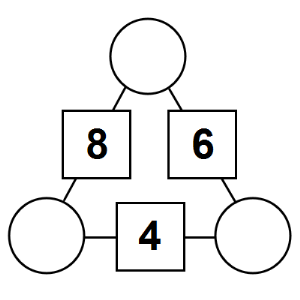 The aim of an arithmagon is to work out which numbers go in the empty circles. The numbers in the square boxes are made by adding together the numbers in the circles either side. For example, if the number in the square box was 10 you could try 6 and 4, but the numbers must also add up on the other edges, making this more difficult than it first appears.