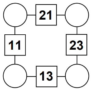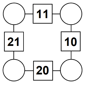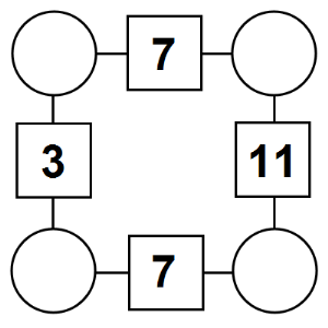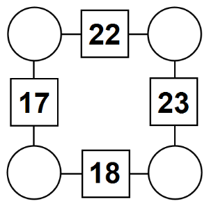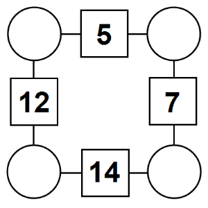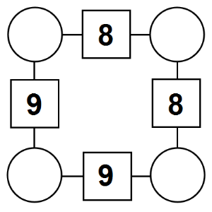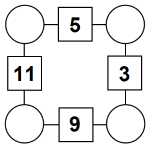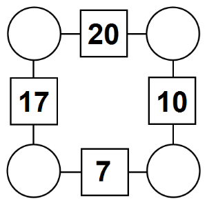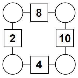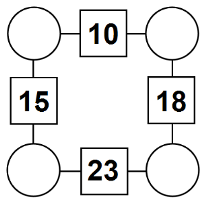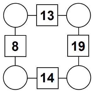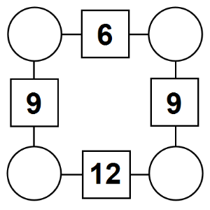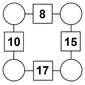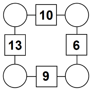 The aim of an arithmagon is to work out which numbers go in the empty circles. The numbers in the square boxes are made by adding together the numbers in the circles either side. For example, if the number in the square box was 10 you could try 6 and 4, but the numbers must also add up on the other edges, making this more difficult than it first appears.