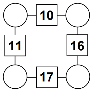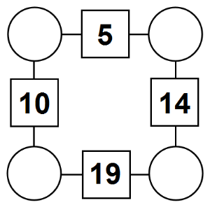 The aim of an arithmagon is to work out which numbers go in the empty circles. The numbers in the square boxes are made by adding together the numbers in the circles either side. For example, if the number in the square box was 10 you could try 6 and 4, but the numbers must also add up on the other edges, making this more difficult than it first appears.