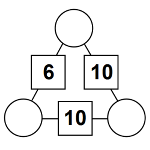The aim of an arithmagon is to work out which numbers go in the empty circles. The numbers in the square boxes are made by adding together the numbers in the circles either side. For example, if the number in the square box was 10 you could try 6 and 4, but the numbers must also add up on the other edges, making this more difficult than it first appears.