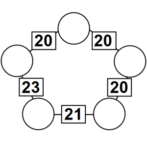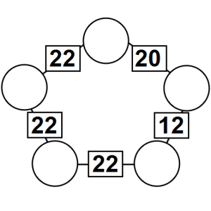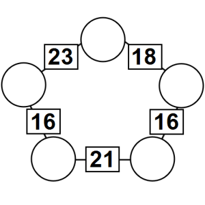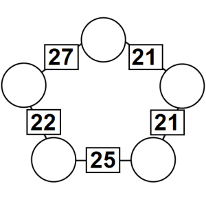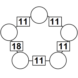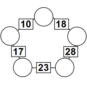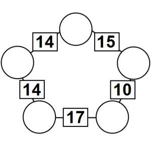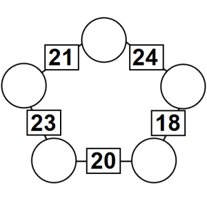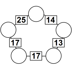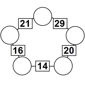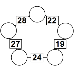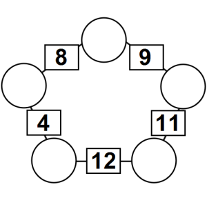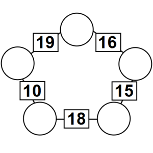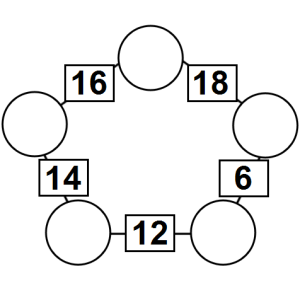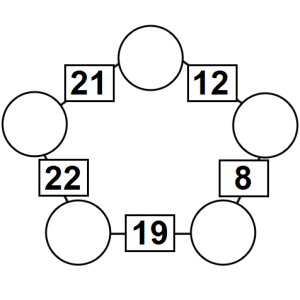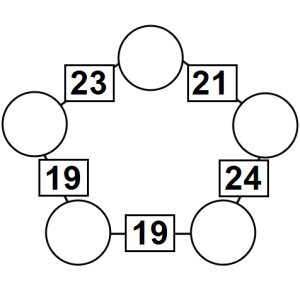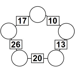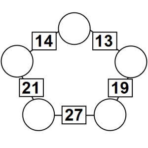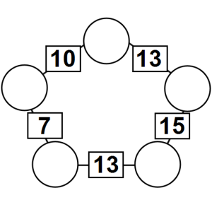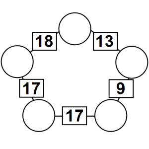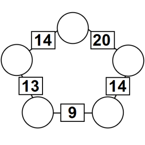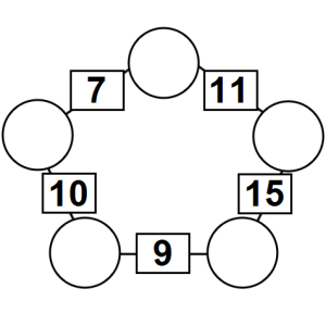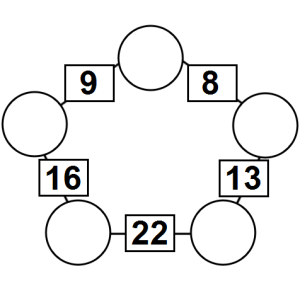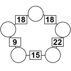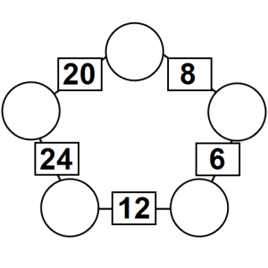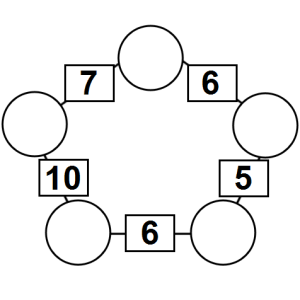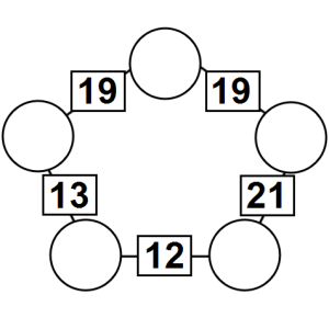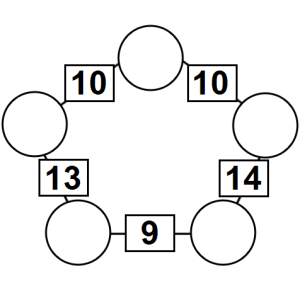 The aim of an arithmagon is to work out which numbers go in the empty circles. The numbers in the square boxes are made by adding together the numbers in the circles either side. For example, if the number in the square box was 10 you could try 6 and 4, but the numbers must also add up on the other edges, making this more difficult than it first appears.