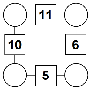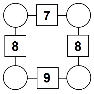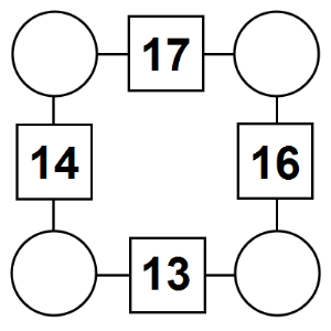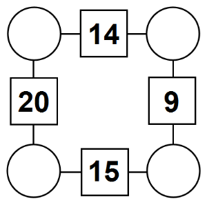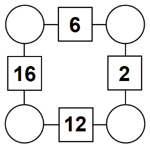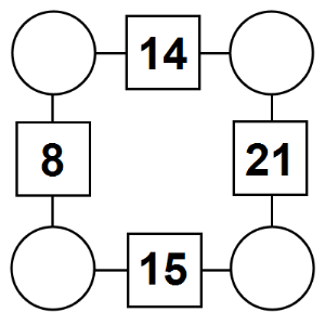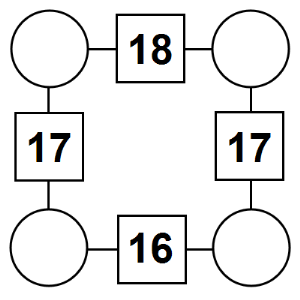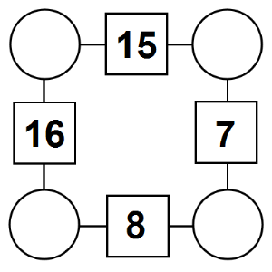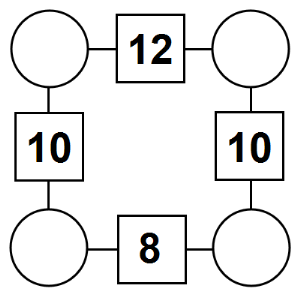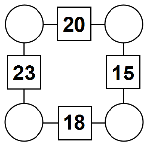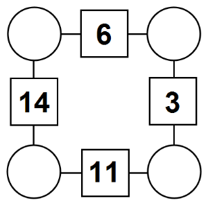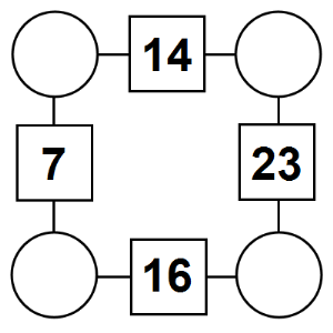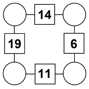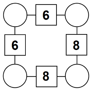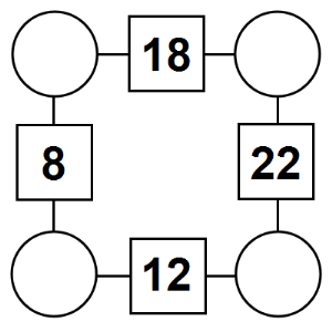The aim of an arithmagon is to work out which numbers go in the empty circles. The numbers in the square boxes are made by adding together the numbers in the circles either side. For example, if the number in the square box was 10 you could try 6 and 4, but the numbers must also add up on the other edges, making this more difficult than it first appears.