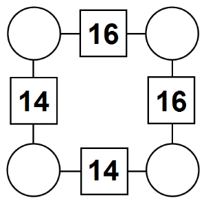 The aim of an arithmagon is to work out which numbers go in the empty circles. The numbers in the square boxes are made by adding together the numbers in the circles either side. For example, if the number in the square box was 10 you could try 6 and 4, but the numbers must also add up on the other edges, making this more difficult than it first appears.
